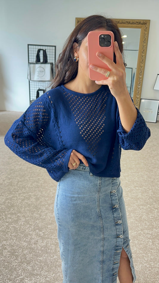 Distinctive Design Knit Sweater - Navy Blue
