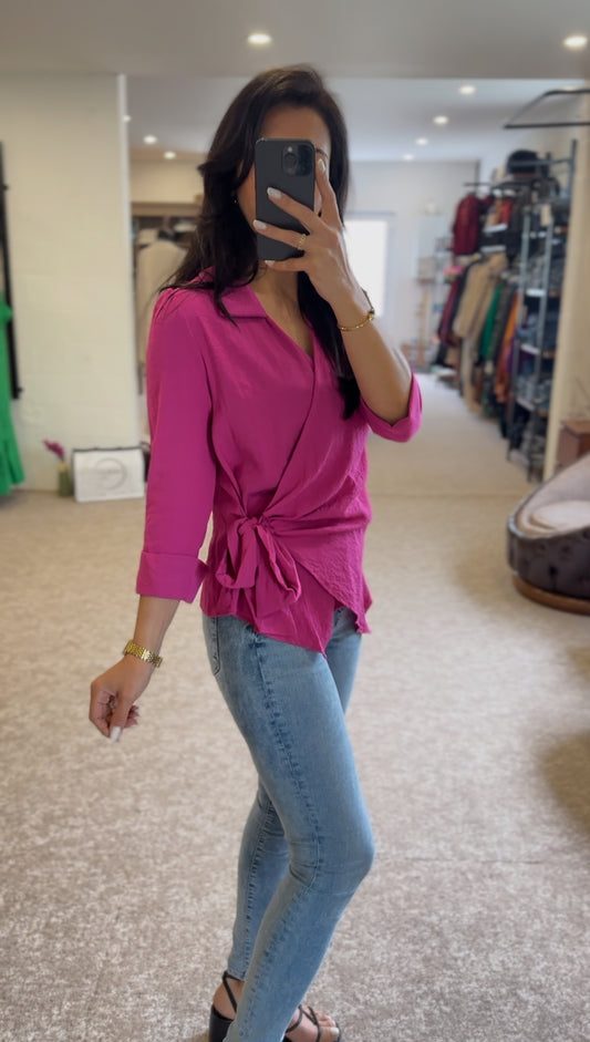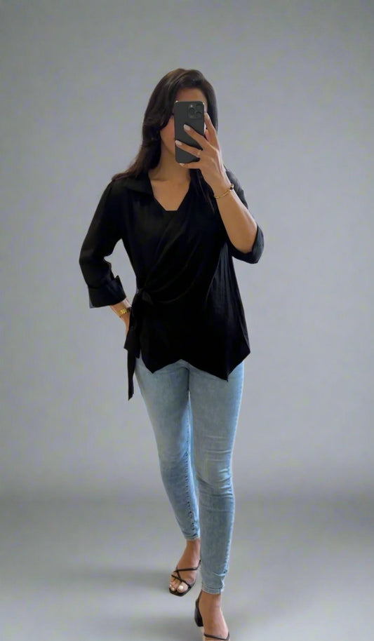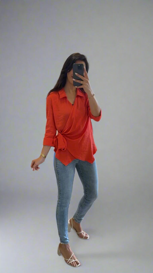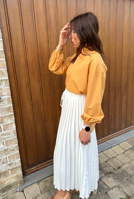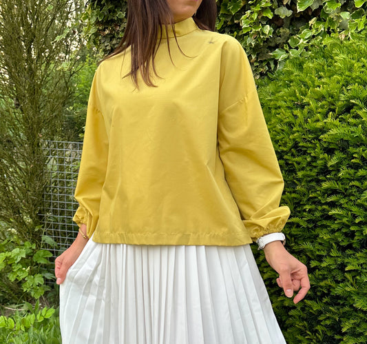 High Collar Long Sleeve Blouse With Side Slit in Mango collor