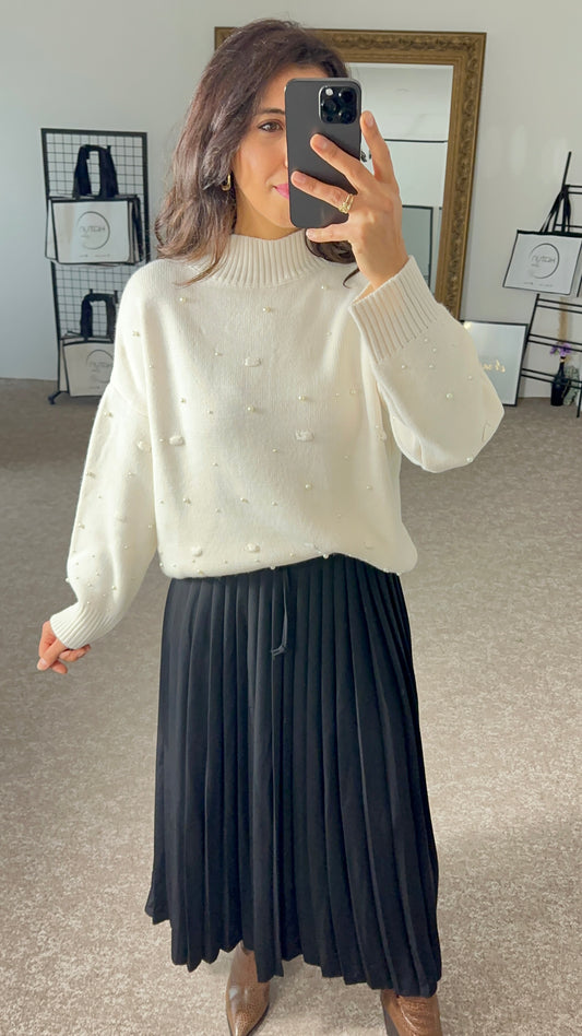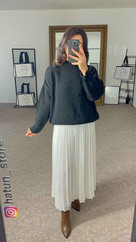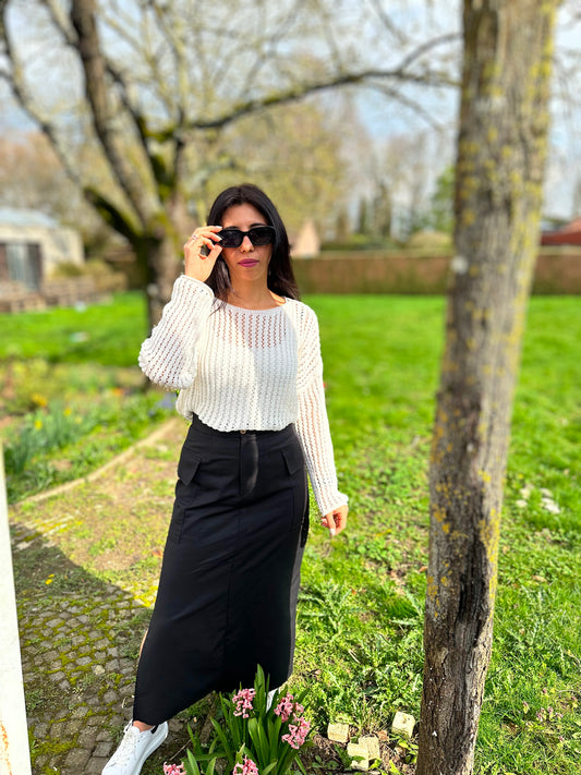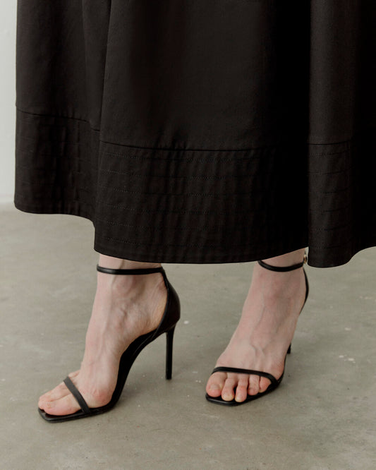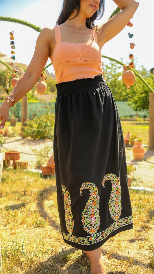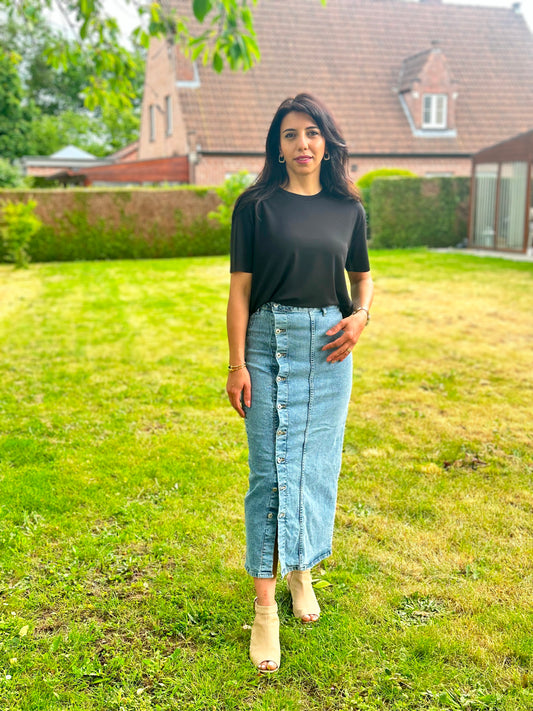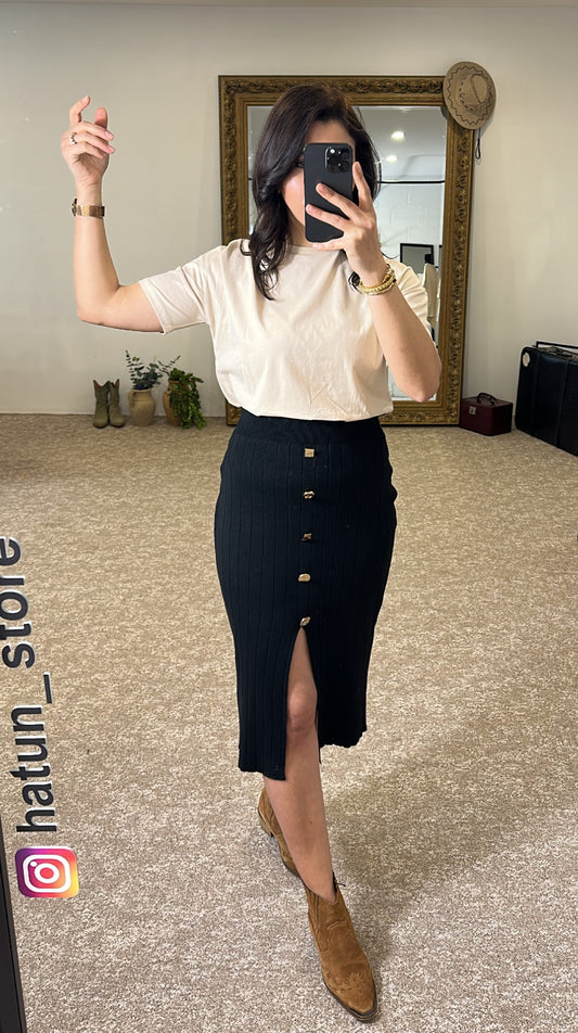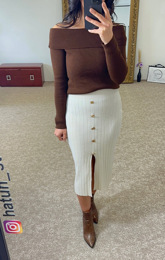 Ribbed Knits Brown Midi Skirt with Natural Shell Buttons