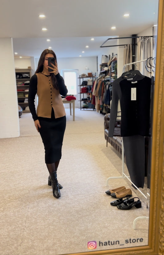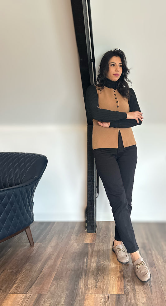 Ravi Sweater Vest,Sleeveles Front Button, tank top - Bronze/ Vizon